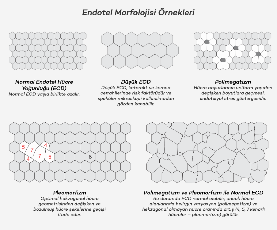 Düşük endotel hücre yoğunluğu ve önceden mevcut endotelyal distrofiler, teknik olarak sorunsuz geçen bir katarakt cerrahisinde dahi postoperatif sonuçların olumsuz etkilenmesine neden olabilir. Cerrahlar, özellikle premium göz içi lens (GİL) önerirken bu verileri kritik önemde değerlendirmektedir. Ameliyat öncesinde korneanın olası postoperatif komplikasyonlara yatkın olmadığının doğrulanması ve belgelendirilmesi, premium lens yatırımı yapılan hastalarda klinik güvenliği artırır ve hasta beklentilerinin doğru yönetilmesini sağlar.