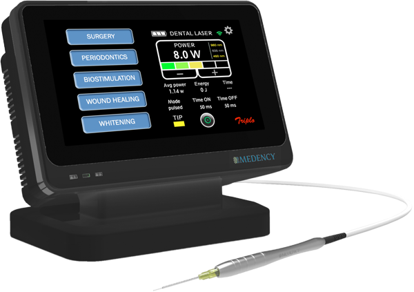Medency, implantolojiden yumuşak doku cerrahisine, periodontal cep dekontaminasyonundan endodontik dezenfeksiyona kadar geniş bir dental uygulama yelpazesi için tasarlanmış gelişmiş diyot lazer sistemlerinde uzmanlaşmıştır.
