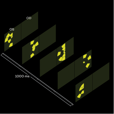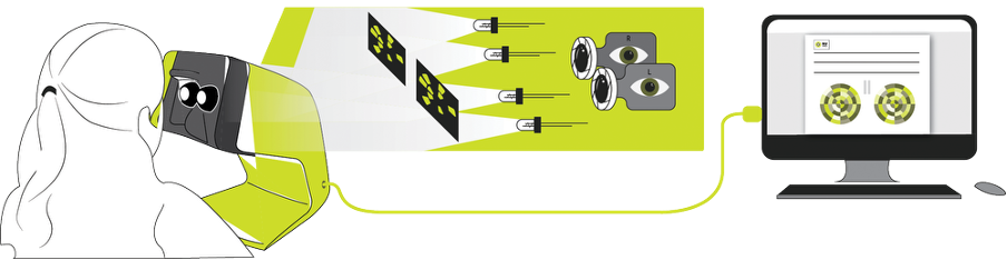 Yenilikçi donanım ve yazılımın birlikte kullanılmasıyla, her bir gözün görme alanı optik olarak ayrıştırılır ve hastanın görsel algısı birleştirilerek tek bir görüş elde edilir.