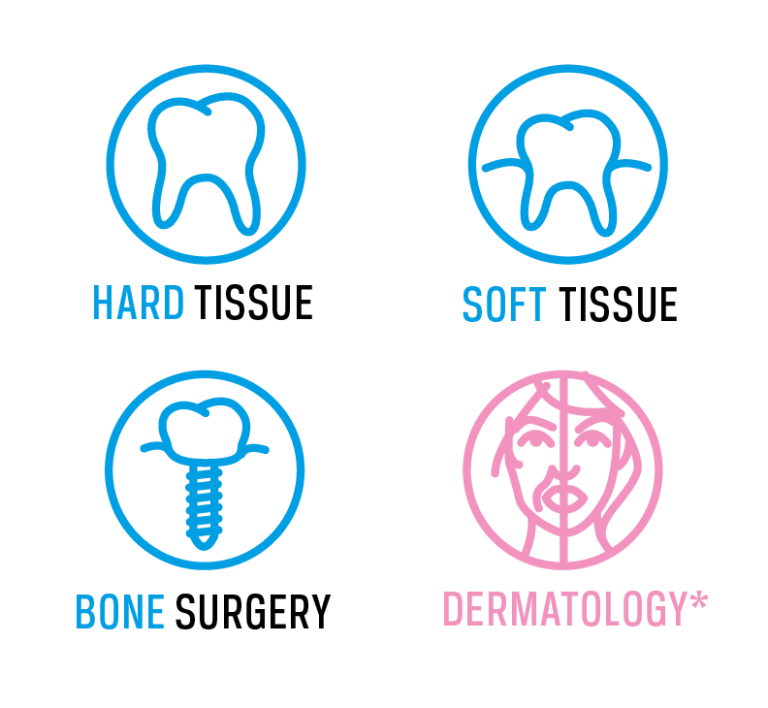 Pluser, diş hekimliği ve dermatolojide* çok sayıda uygulamaya sahip multidisipliner bir platformdur. Geniş başlık yelpazesi, her tedavide sizi basitlik ve etkinlikle destekler.