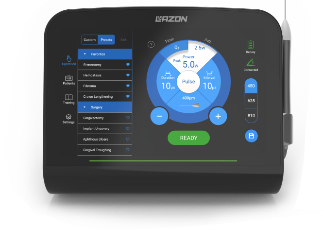 SOLASE Pro ile hekimler, her doku tipine ve tedavi amacına özel dalga boylarını kullanarak termal hasarı en aza indirir, iyileşme süresini kısaltır ve hasta konforunu en üst düzeye çıkarırken, aynı zamanda klinik sonuçlarda kusursuzluğa ulaşır.