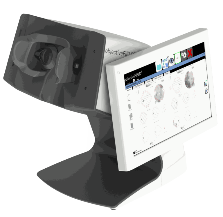 Hasta yanıtına ihtiyaç duymayan bu yenilikçi perimetri cihazı, glokom, nörolojik hastalıklar ve diyabetik retinopati gibi durumların erken teşhisinde kritik bir rol oynar. Geleneksel test yöntemlerine kıyasla hızlı, verimli ve güvenilir bir değerlendirme sunan objectiveFIELD®, klinik süreçlerinizi optimize etmenize yardımcı olur.
